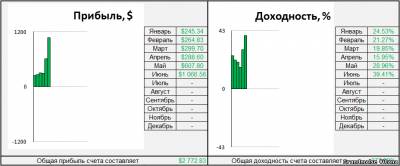 Прошедший месяц потрепал нервы. 5 стоповых сделок за месяц это сильно. Но счет выбрался из просадки (ВАУ!!). Очень горд за свой советник (написанный мною кстати). Он не только смог выправить счет, но наторговать очень не плохую прибыль. Конечно должен признаться, большая часть прибыли досталась по воле случая. Гэп, который был на открытии рынка 29 июня, был в сторону открытой сделки. Но, если бы он был против сделки, то счет потерпел бы крах. Так что "Рынку спасибо". Сделок было совершено очень много. Наверное это минус. Но главное результат.